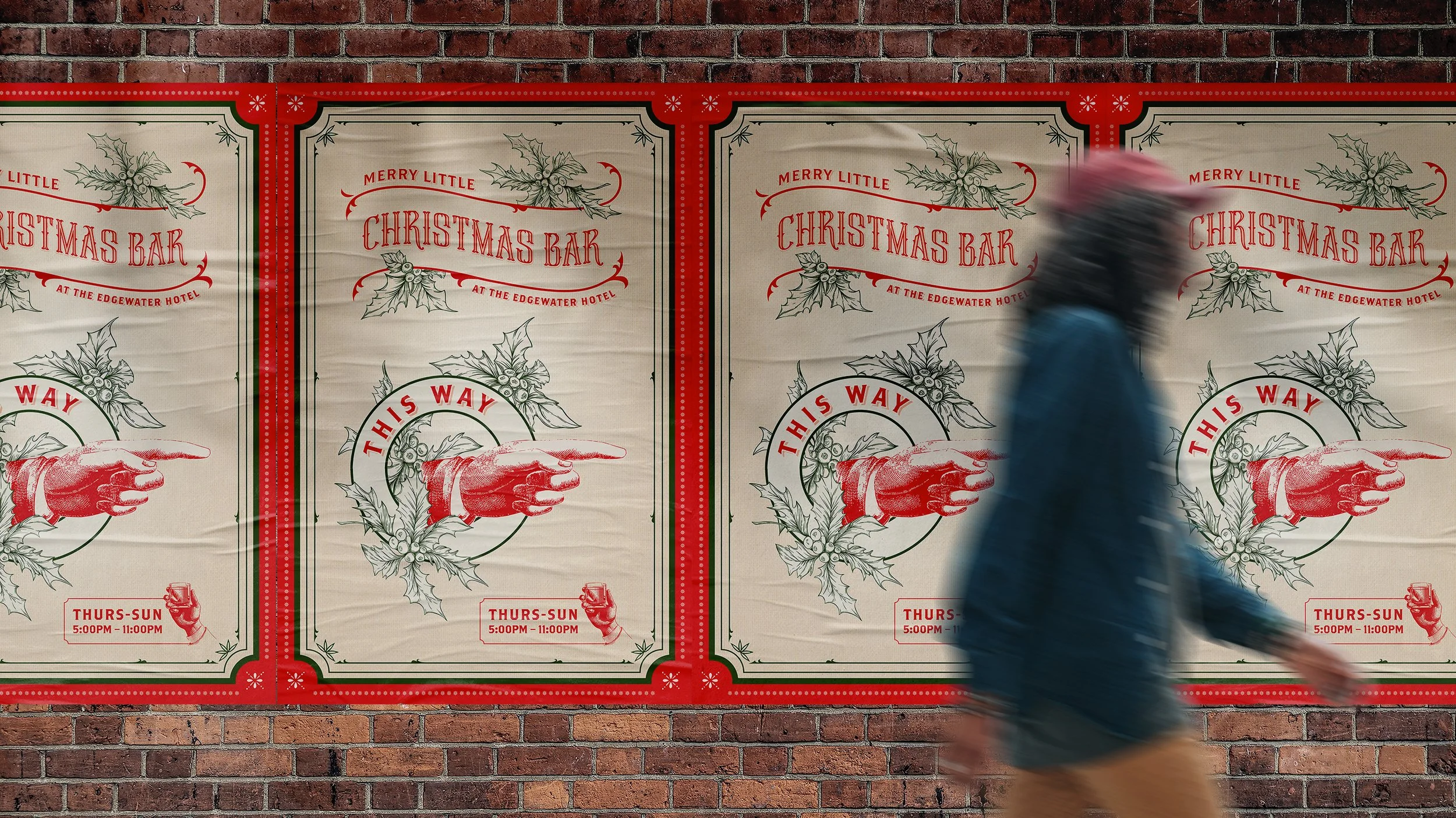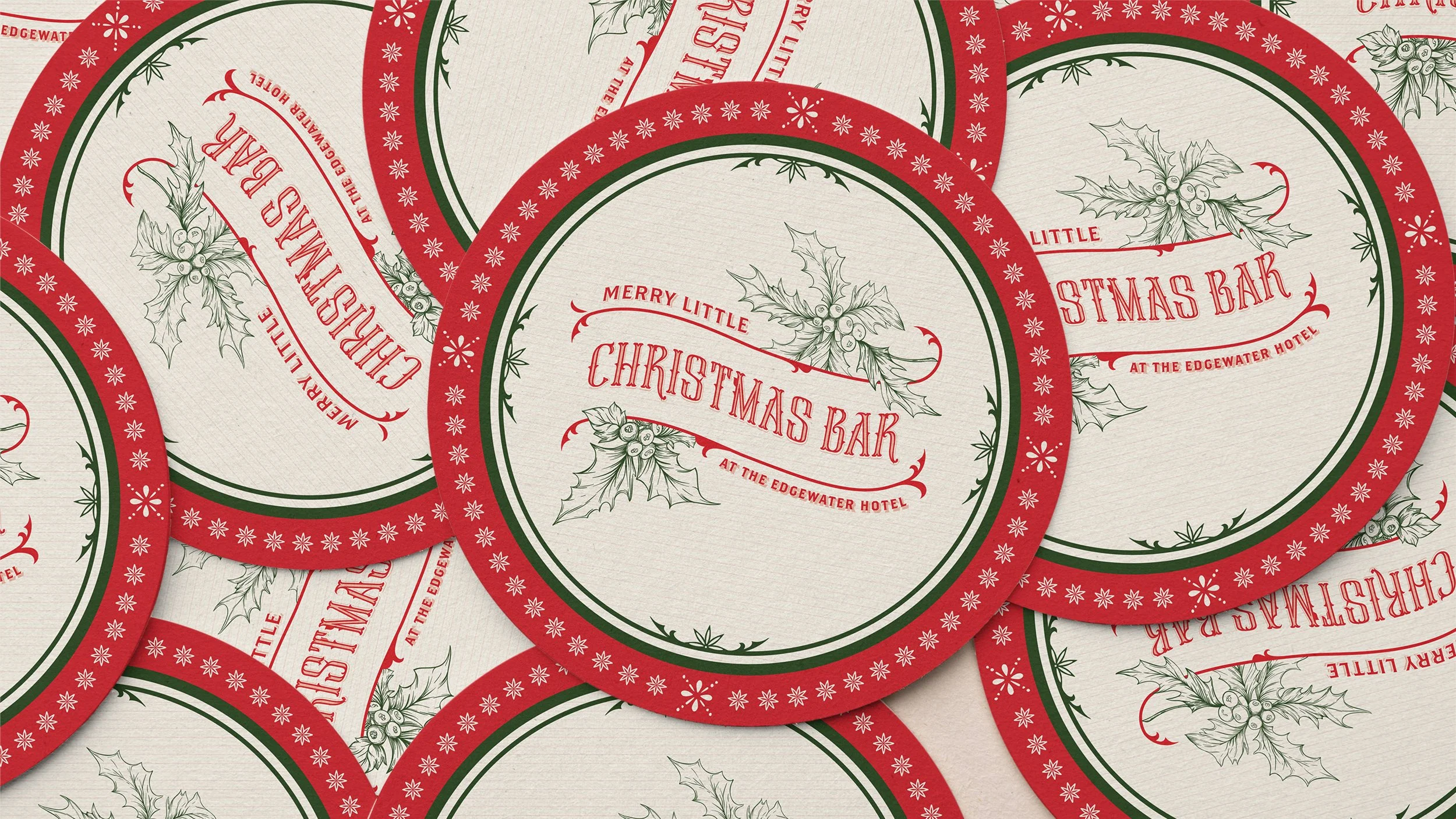 The Merry Little Christmas Bar joins many other holiday pop-up bars that spawn in Seattle during the holiday season. Of course, this one is hosted in the iconic Edgewater Hotel, so it’s automatically cooler than the others. The design direction aims to keep to the property’s historic, classy, yet edgy style while adding in elements of whimsy and excitement. This project had many different pieces, including a promotional tear-off voucher, way-finding signage, and cross-promotional print materials.